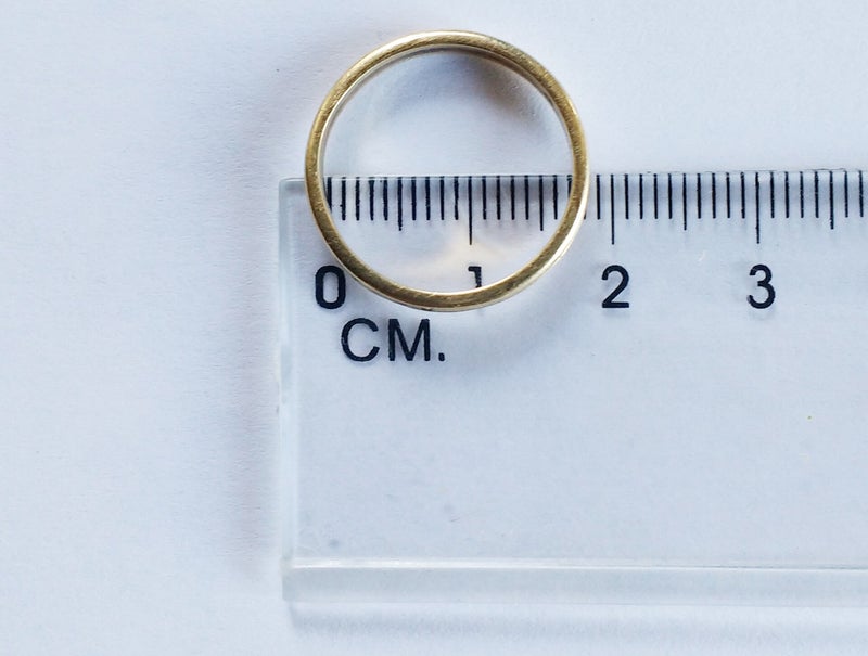 De handigste manier om de maat te bepalen is een ring te nemen die goed om de vinger past. Leg deze ring op een liniaal (zie figuur). Zet de binnenkant op 0 cm. Lees de millimeters af van de andere binnenrand. Dat is de ringmaat.