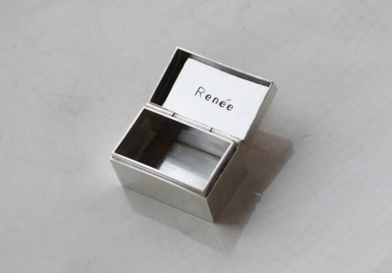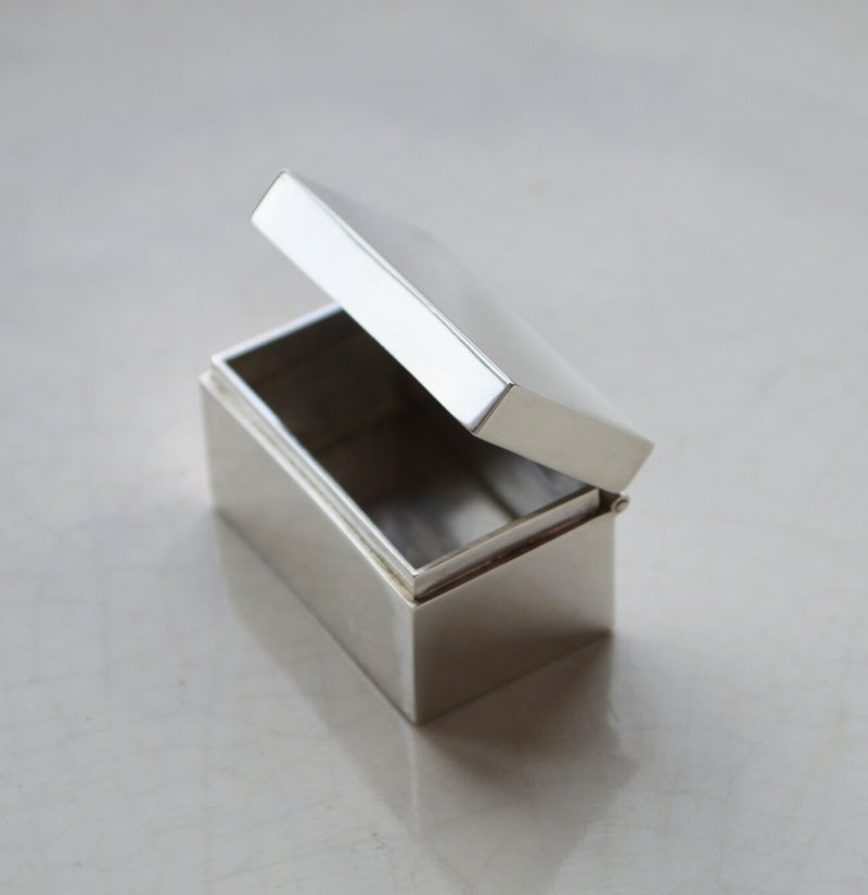 Luxe zilveren doosje, met scharnierend dekseltje. De maten van het doosje zijn 35 X 20 X 20 mm.