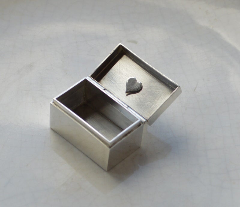 Op het dekseltje, of aan de binnenkant, kan ik een hartje solderen, of een naam/tekst aanbrengen. Vertel me in een berichtje wat je zou willen. De extra kosten zijn €15,00.